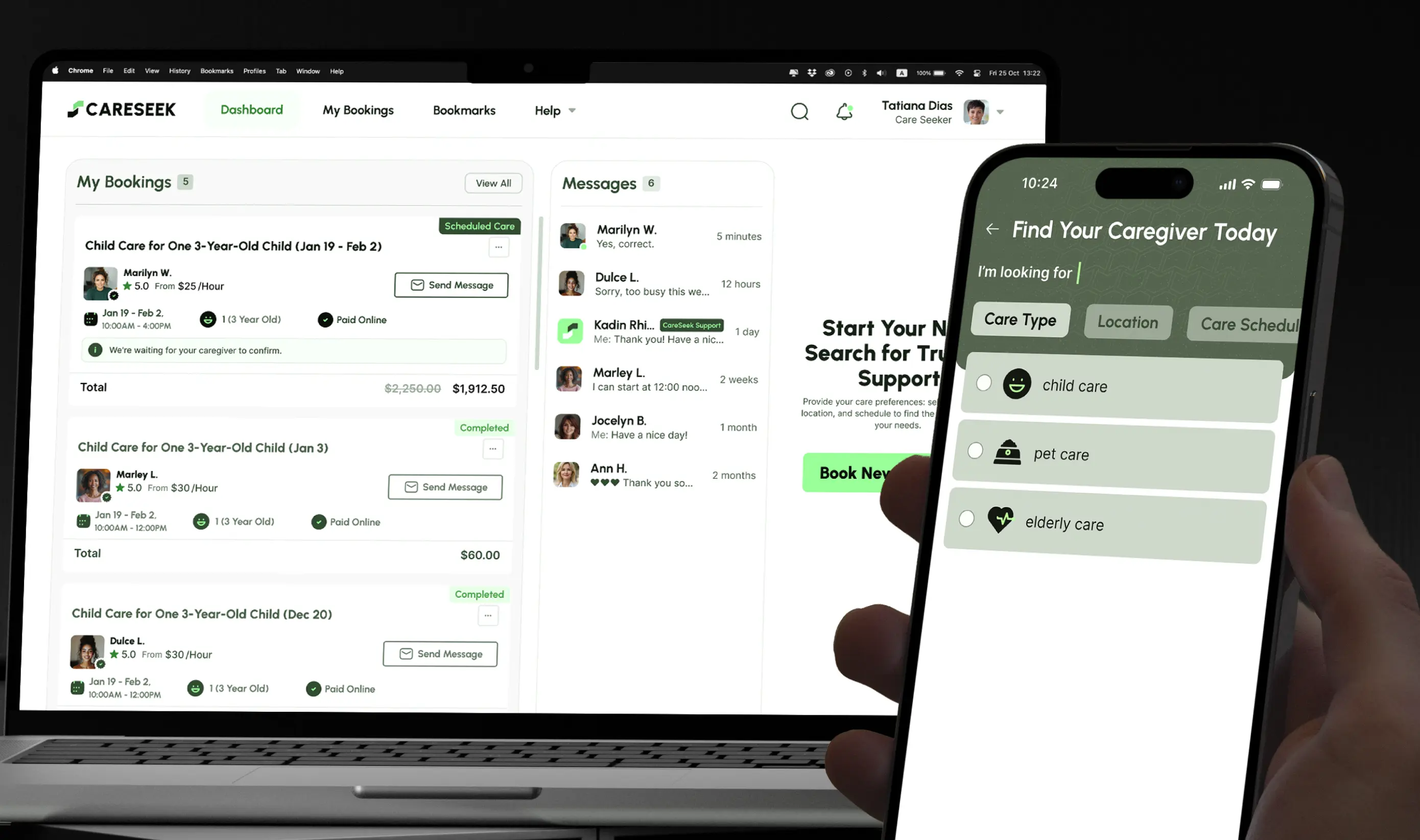 Care Seekers: Focused on easy service discovery, caregiver vetting, booking, and payment