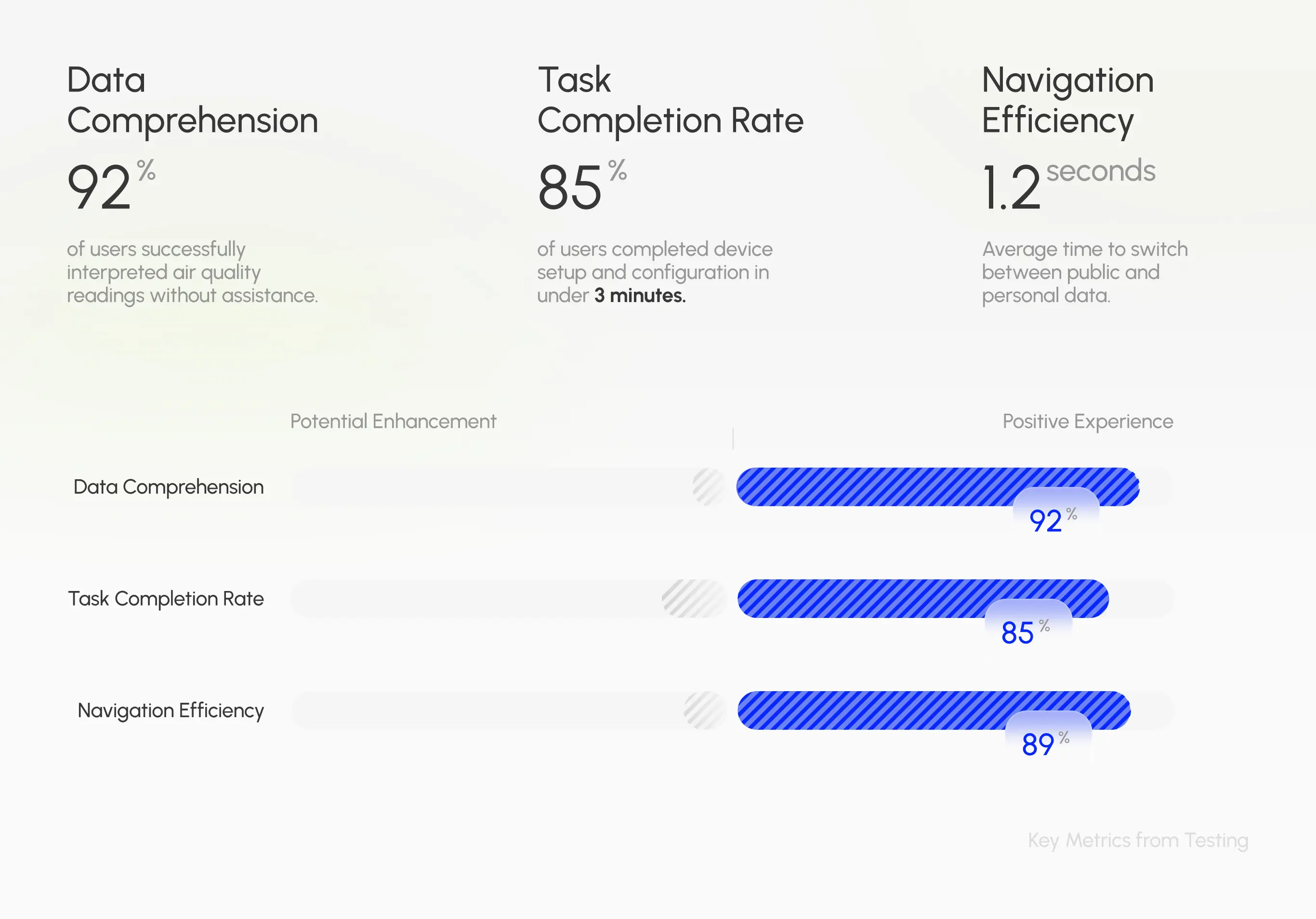I conducted comprehensive usability testing with target users to validate design decisions and identify optimization opportunities. This iterative approach ensured that the final design truly met user needs and provided an intuitive experience for monitoring environmental conditions.